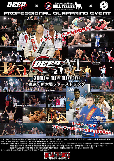 10/10に新木場1st RINGで開催されるDEEP X 06の対戦カードが発表されました。 吉祥寺所属のチーゾムさん、古河所属の吉田さん、そして以前グラッップリングのインストラクターをされていた八隅さんが出場されます。 また、今年のアブダビプロ柔術-74Kg級優勝、2009ムンジ準優勝のギルバート・ドゥリーニョ・バーンズ選手が初来日。 その他ムンジ、アジア2冠王のホベルト・サトシ・ソウザ選手も出場します。 個人的には松本選手VS佐々木選手がものすごく楽しみです。 以下決定カードです(コピペですが、八隅さんの所属が間違っていたので修正しています) ▼80kg契約 3R(1R4分・2R4分・3R2分) ギルバート“ドゥリーニョ”バーンズ(ブラジル/アトス柔術/2010年ワールドプロフェッショナル柔術世界選手権優勝) VS 長谷川秀彦(SKアブソリュート/元DEEPウェルター級王者) ▼契約体重なし 2R(1R4分・2R4分) ミイナ(モデル) VS ドルショック竹下(漫画家) ▼無差別級契約 3R(1R4分・2R4分・3R2分) 関根“シュレック”秀樹(ボンサイ柔術/アブダビプロ100kg超級王者) VS ギャングコング・ヨシダ(パラエストラ古河) ▼65kg契約 3R(1R4分・2R4分・3R2分) 佐々木憂流迦(和術慧舟會駿河道場) VS 松本義彦(フリー/ブラジリアン柔術ムンジアル王者) ▼オープニングファイト 75kg契約 5分1R 松本崇寿(パラエストラ八王子) VS AB(和術慧舟會駿河道場) ▼オープニングファイト 65kg契約 5分1R 猿飛流(REDIPS) VS 高橋正典(トライフォース秋葉原) <出場予定選手> 八隅孝平(ロータスパラエストラ世田谷) KOTETSU(フリー) クレベル・コイケ(ボンサイ柔術/ブラジリアン柔術紫帯全日本&アジア選手権王者) 菊池嘉幸(フリー/サンボ全日本王者) チーゾム・オーロ(アメリカ/パラエストラ吉祥寺) 山本龍之介(GROUND CORE) PR 2010.09.10 Fri 12:21:06